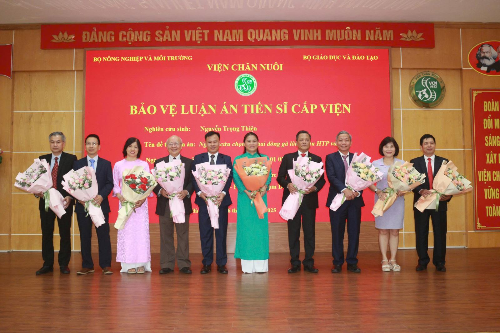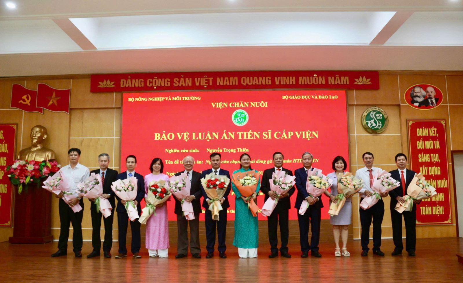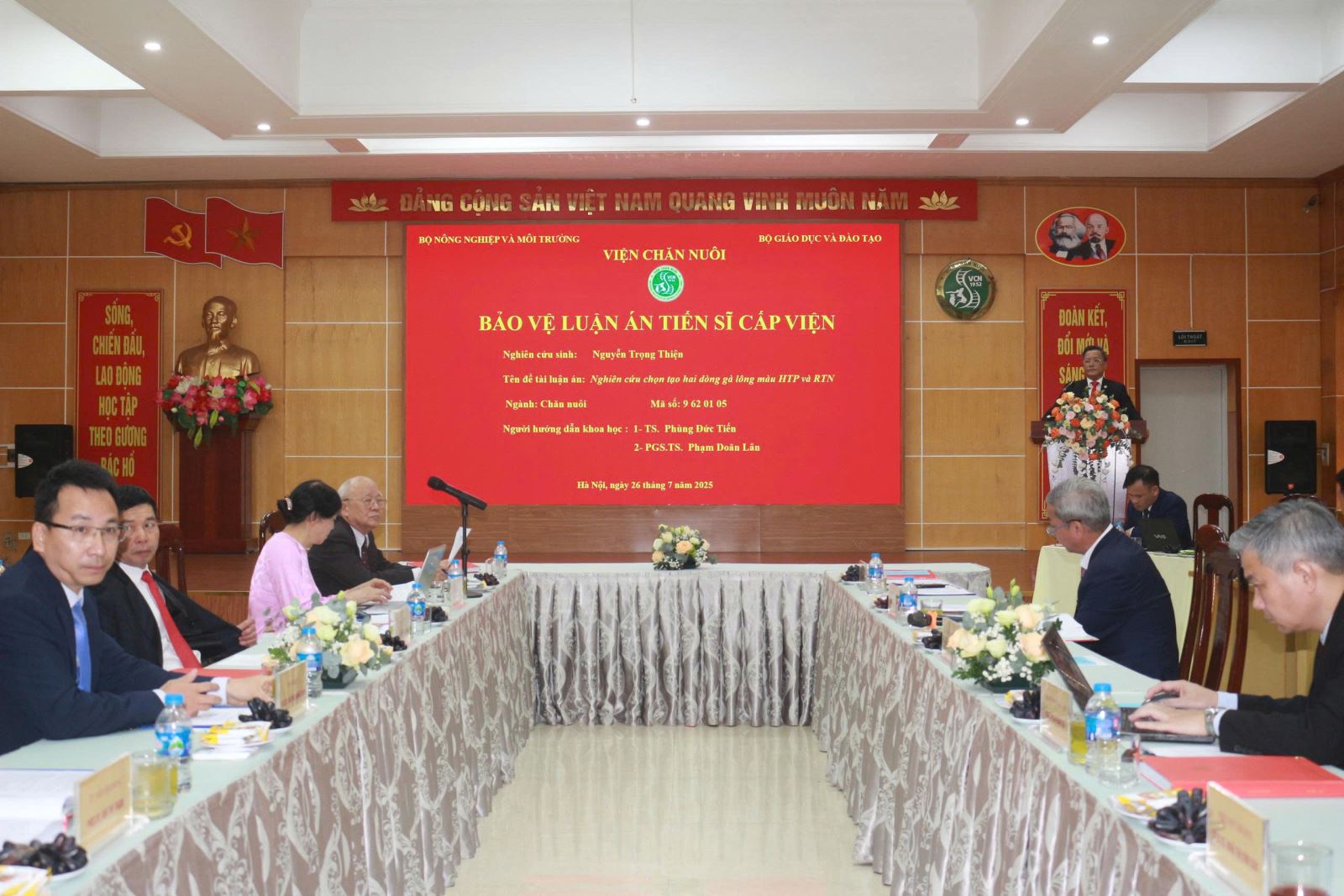 Sáng 26 tháng 7 năm 2025, tại Viện Chăn nuôi – số 9 Tân Phong, Phường Thượng Cát, TP Hà Nội, Hội đồng đánh giá luận án Tiến sĩ cấp Viện (theo Quyết định thành lập Hội đồng số 236/QĐ-VCN-KHĐT&HTQT ngày 03 tháng 6 năm 2025) đã họp để đánh giá luận án cho nghiên cứu sinh Nguyễn Trọng Thiện.