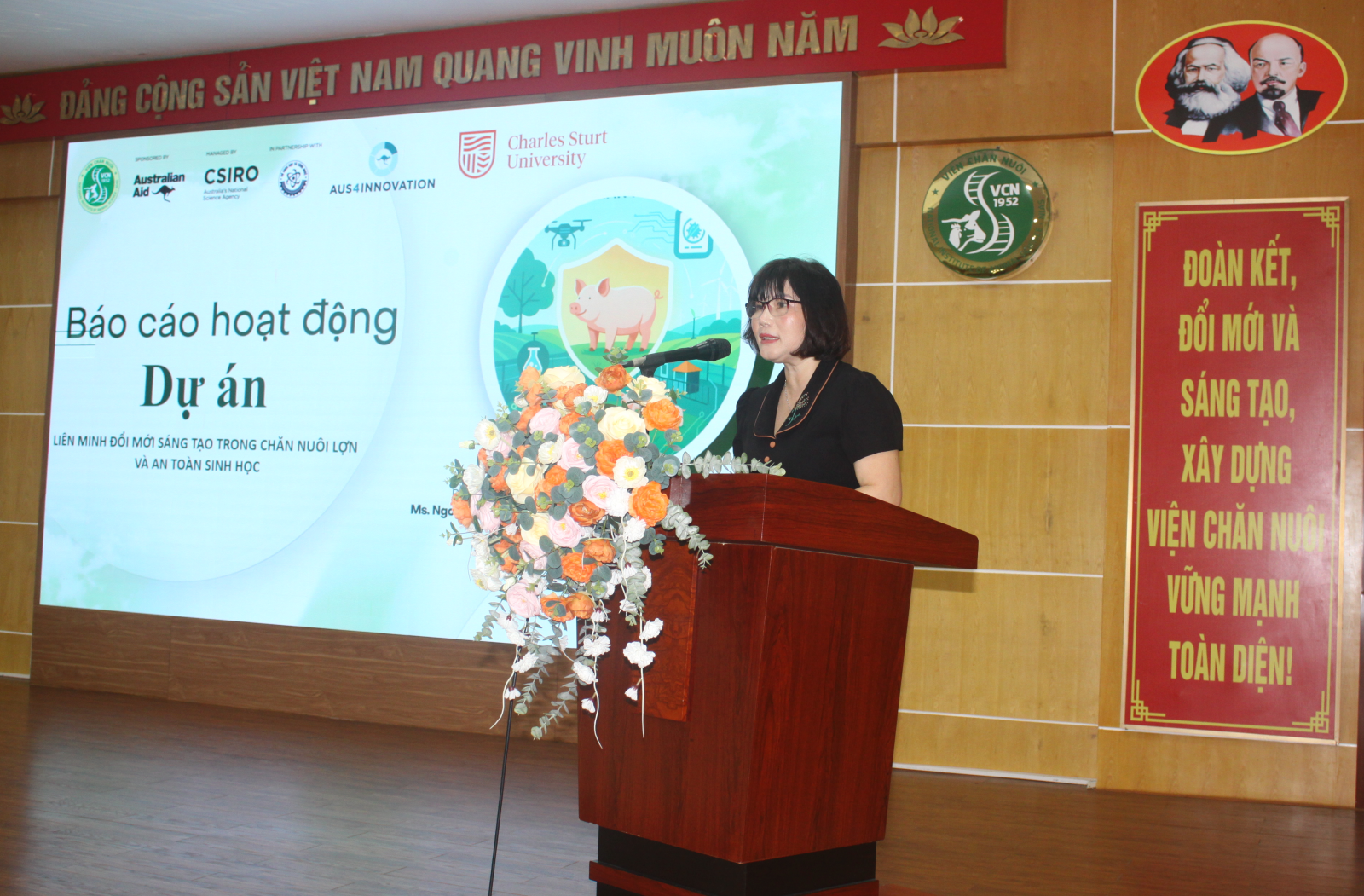 PGS.TS. Ngô Thị Kim Cúc – Phó Viện trưởng Viện Chăn nuôi cập nhât hoạt động của dự án Liên minh An toàn sinh học trong chăn nuôi lợn