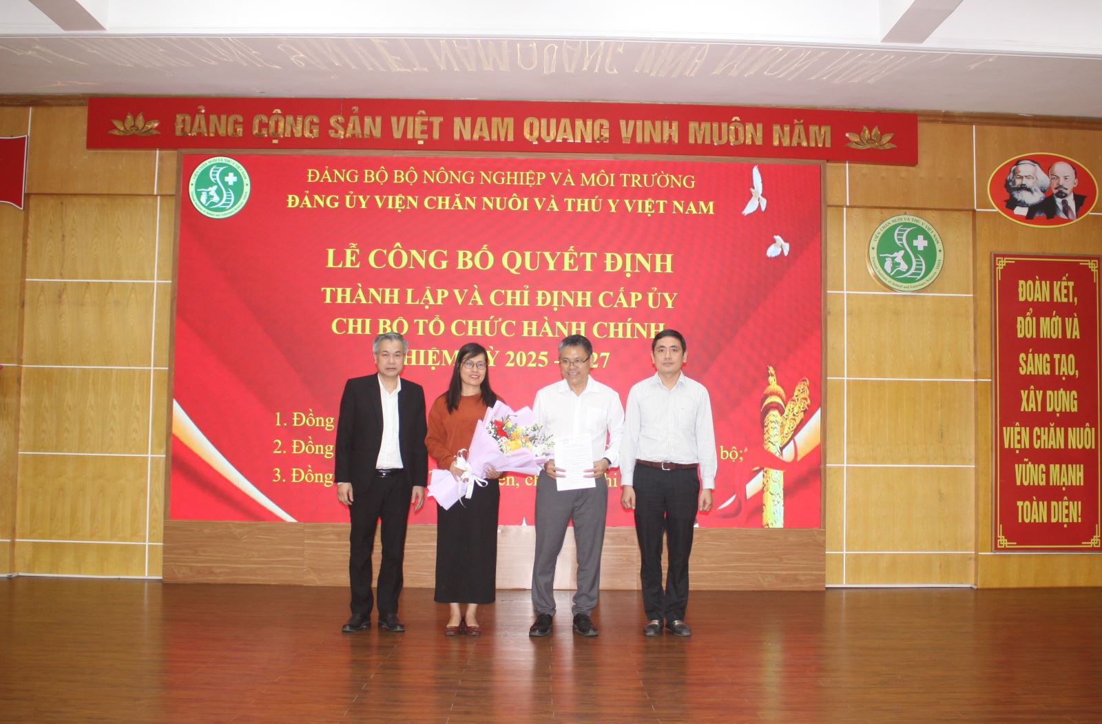 Chiều ngày 6/3/2026, tại Viện Chăn nuôi và Thú y Việt Nam, Đảng bộ Viện Chăn nuôi và Thú y Việt Nam tổ chức Hội nghị công bố quyết định thành lập Đảng bộ và chỉ định Ban chấp hành, Bí thư, Phó Bí thư, UBKT, Chủ nhiệm, Phó Chủ nhiệm UBKT Đảng bộ Viện; quyết định thành lập Đảng bộ bộ phận, Chi bộ và chỉ định cấp ủy các Đảng bộ, Chi bộ trực thuộc Đảng bộ Viện Chăn nuôi và Thú y Việt Nam.