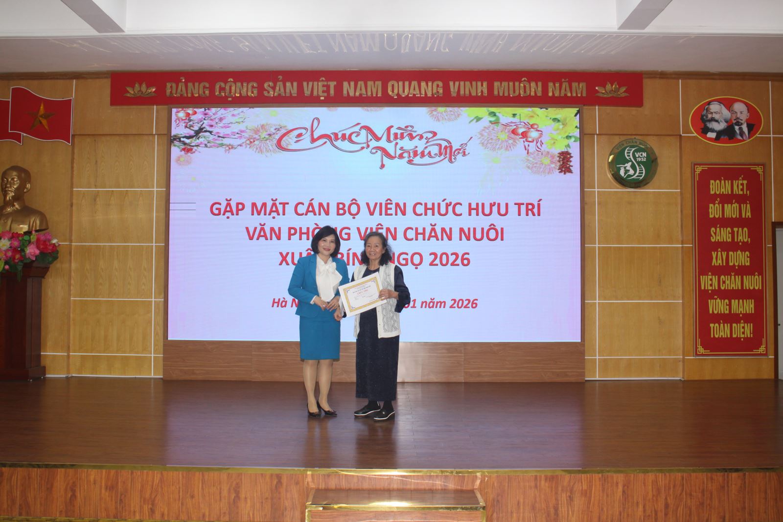 Sáng ngày 30/1/2026, Lãnh đạo Viện Chăn Nuôi và Thú y Việt Nam dự buổi gặp mặt cán bộ hưu trí của Viện Chăn nuôi xuân Bính Ngọ 2026 tại Hội trường lớn của Viện Chăn nuôi và Thú y Việt Nam, Phường Thượng Cát, TP. Hà Nội.