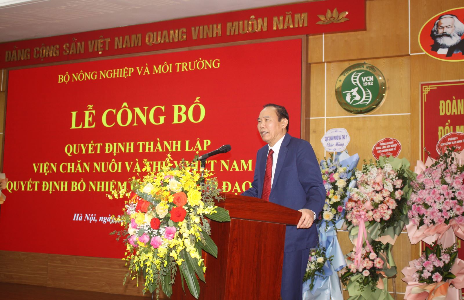 Quyền Viện trưởng Viện Chăn nuôi và Thú y Việt Nam ông Phạm Doãn Lân phát biểu tại lễ công bố quyết định