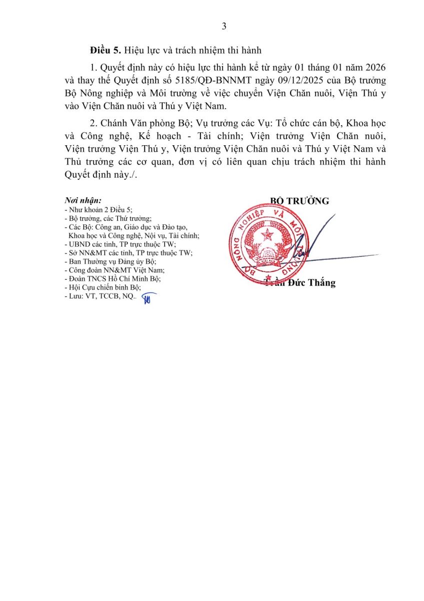 - Lễ công bố quyết định thành lập Viện Chăn nuôi và Thú y Việt Nam ( 31/12/2025)
